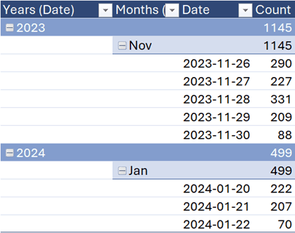(Only 70 on Jan 22, 2024 as the Event export was done in the middle of the morning)