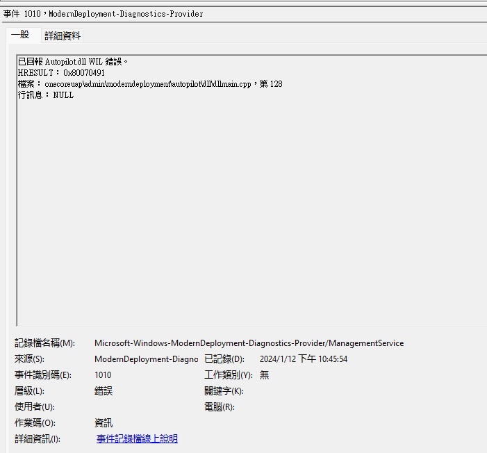 Many persistent errors in Event Viewer after Windows 11 build 22598.ni_release.220408-1503: "Autopilot.dll wil error was reported"
