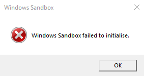 It sounds like you are encountering the "Windows Sandbox failed to initialize" error on your Windows 10. Sorry to hear this.