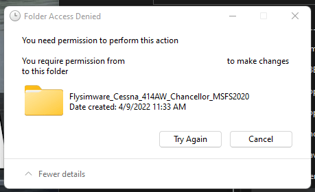 I am the one and only user on my home PC so I am the administrator but when I try to delete some folders after having an installation, I get an error message stating that the access is denied, and I must have permission from my account to perform the action (image attached). I have tried the shift + delete method which has not been successful, and it seems the only way to remove the folder is if I restart my PC. Any ideas on how I can prevent having to restart each time I want to remove a folder? It doesn't happen to all folders, mind you, but it seems to happen on folders where I installed through an application.
