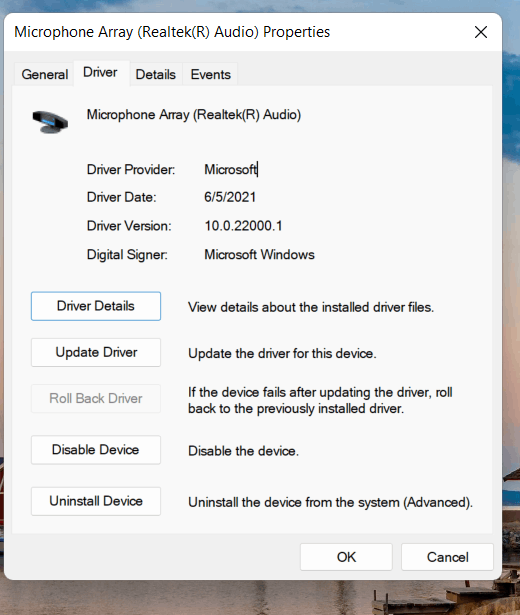 Microphone Array driver is not updated in Windows 11, making the mic silent
