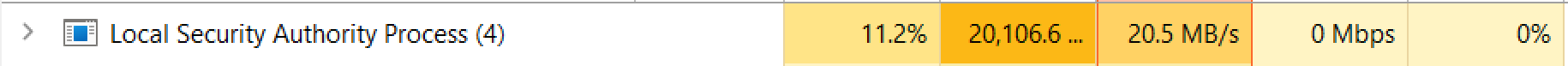 Welcome to Microsoft Community.You have encountered a problem of high occupancy of the LSAP process. This issue has also received feedback from users recently.