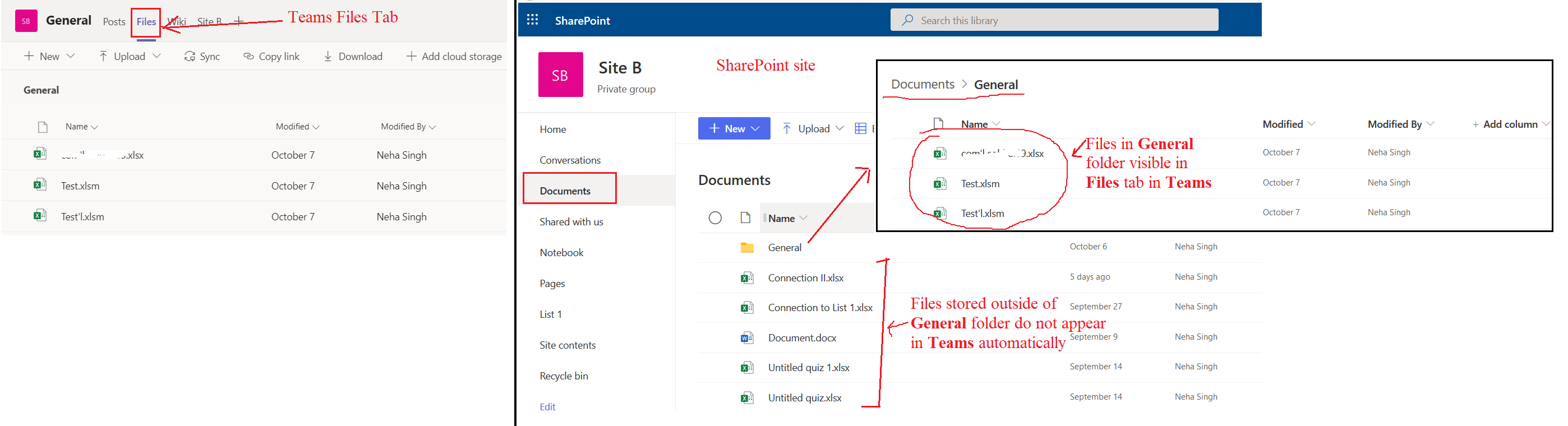 For more information, please through Should I store my files in Microsoft Teams or in SharePoint? An understanding of behind the scenes