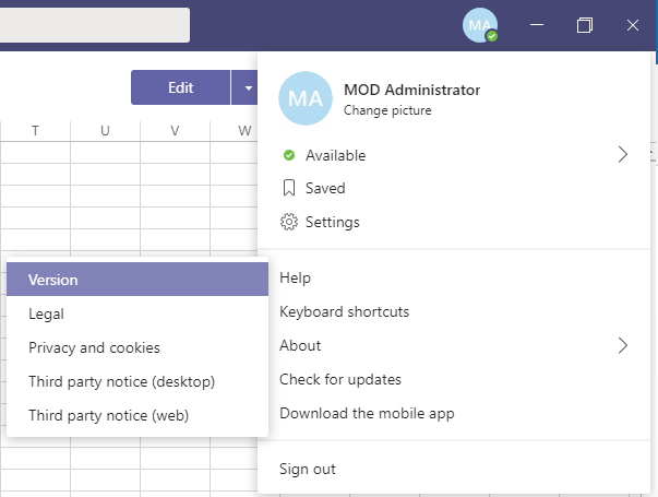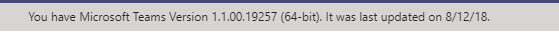 - What’s version of Teams do you use? Please send us a screenshot of the version information like below picture. See: click on your account in Teams, About, Version.