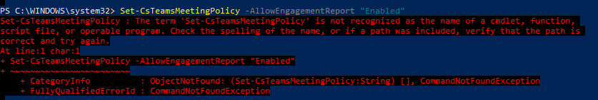 Set-CSTeamsMeetingPolicy - Identity Global - AllowEngagementReport "Enabled"