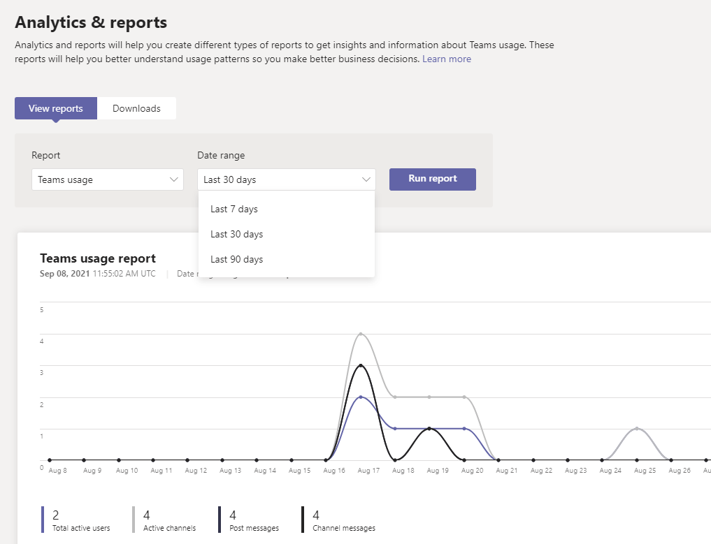 We have a requirement to gather and show teams usage data in our custom admin dashboard. We want to identify if which teams are not active since last 7, 30, 90 days.