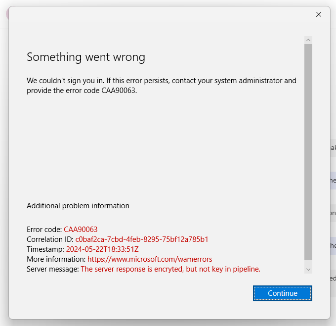 The error code CAA90063 in Microsoft Teams is commonly related to Multi-Factor Authentication (MFA) issues. Given that the user has already tried resetting MFA, clearing the Teams cache, and reinstalling Teams without success, here are some additional steps that can be taken to resolve this issue: Check Date and Time Settings:- Ensure the date and time settings on the Dell Windows 11 device are correct and set to automatic. Incorrect date and time can cause authentication issues.Update Windows and Teams:- Ensure that both Windows 11 and Microsoft Teams are updated to the latest versions. Sometimes, updates can resolve underlying issues.Verify Network Connectivity:- Ensure there are no network restrictions or firewall settings that might be blocking the authentication process. Try connecting to a different network to see if the issue persists.Check for Windows Security Policies:- Check if there are any security policies on the device that might be interfering with the authentication process. This could include antivirus software, firewall settings, or group policies.Sign Out and Sign Back In:- In some cases, signing out of all Microsoft accounts on the device and then signing back in can resolve authentication issues.Review Conditional Access Policies:- If your organization uses Azure AD Conditional Access policies, ensure that the policies are not inadvertently blocking access. Check the policies to see if there are any specific conditions that might be causing the issue.Check for Duplicate Device Records:- Sometimes, duplicate device records in Azure AD can cause authentication issues. Check Azure AD for duplicate records of the user’s device and remove any duplicates.Clear Browser Cache:- Since the user is able to use the web app, try clearing the browser cache to ensure there are no stored credentials or tokens causing conflicts.Try a Different Account:- If possible, try logging into Teams with a different account on the same device to see if the issue is specific to the user’s account or the device.Review Event Logs:- Check the Windows Event Viewer for any related logs that might give more insight into the error. Look under the Application and Security logs for any related entries.If the above suggestions didn't work for you, you might also take advantage of having Office 365 as it will give you real-time and advanced technical assistance to solve this matter. The support engineers there have the correct escalation channel and required tools to analyze a critical issue similar to yours.