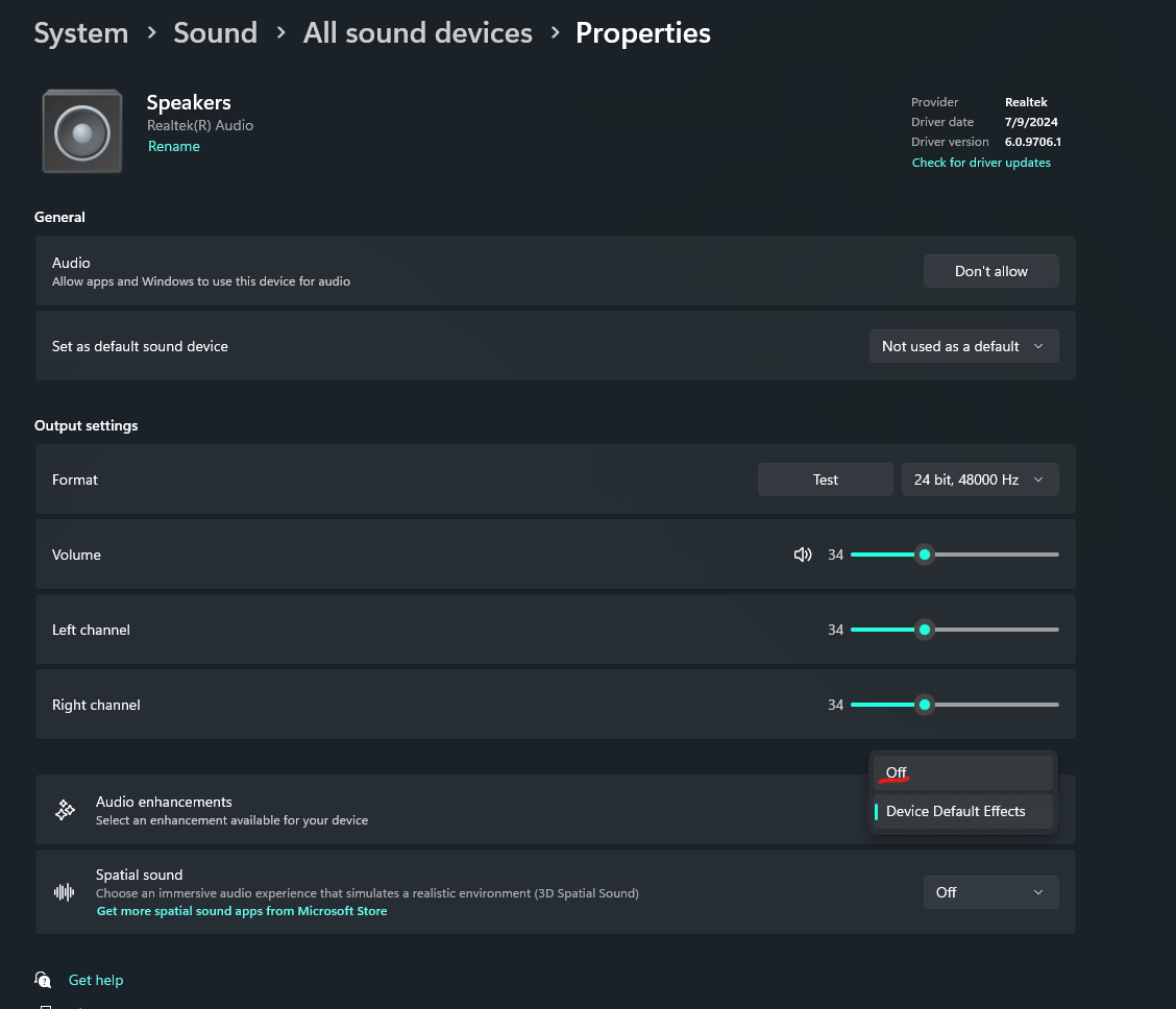 This is what worked for my users but again I changed so many things before this so I am not sure if it was a combination of this and something else. I also went into Teams sound settings and turned off all audio stuff like Noise suppression, again not sure if it has anything to do with it!
