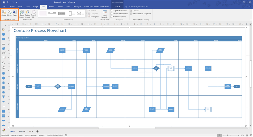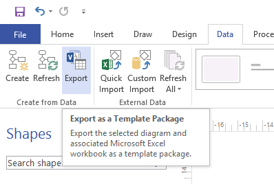 - Once you have created your diagram, select the diagram container, and click on Export (in the Data Tab ‘Create from Data’ section)