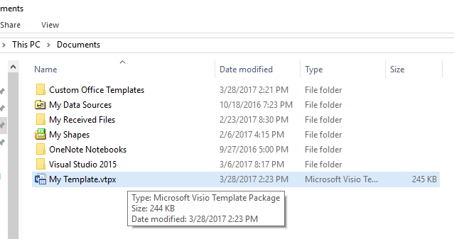 - You can find the template package (.VTPX) in the saved location, share it with another user or install the package in your own machine by double clicking on the file.