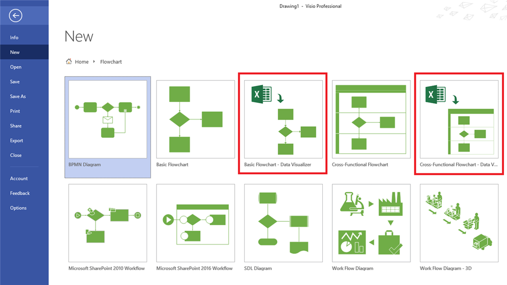 Second, now create Data Visualizer diagrams using any stencil of your choice! The shape mapping step of the Create from Data wizard allows you to select more shapes now.