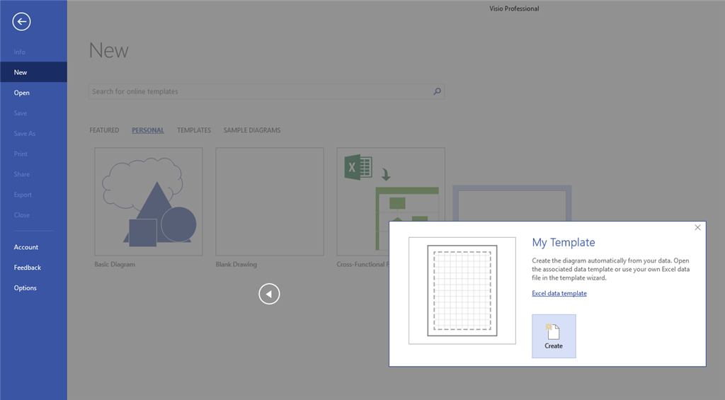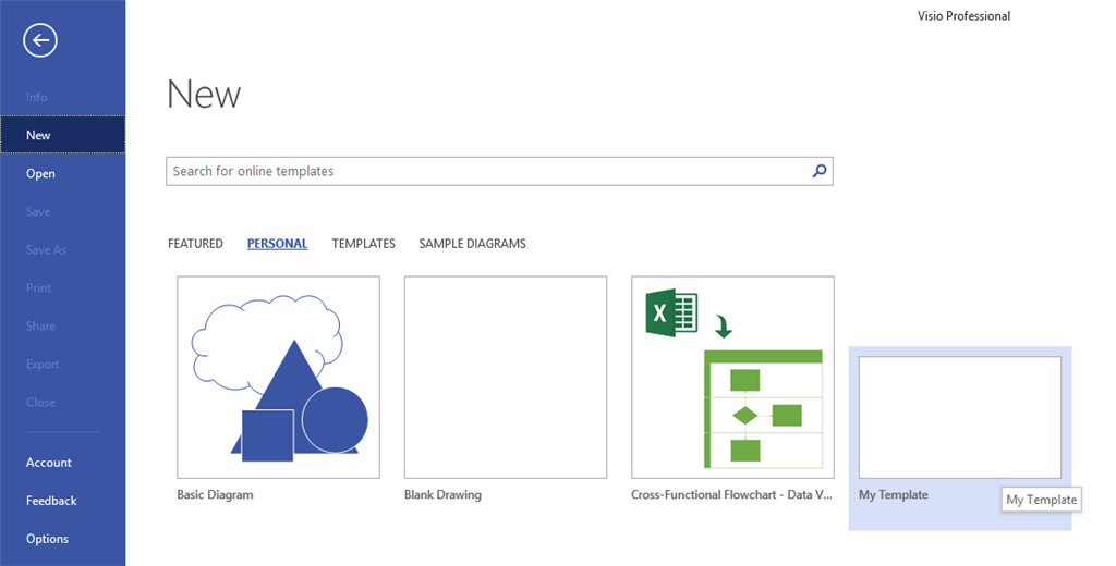 - Double clicking on the .VTPX file places the Visio template in the Personal Tab for templates, in Visio backstage