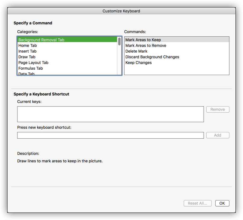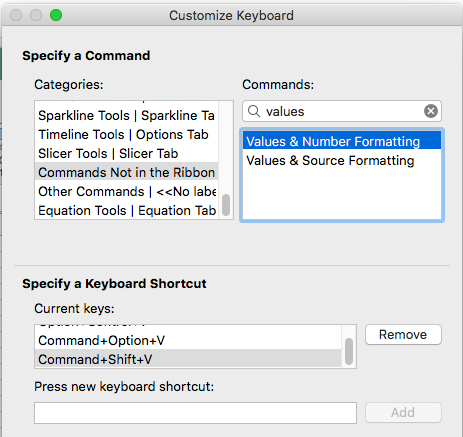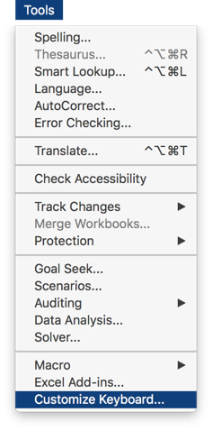Excel for Mac - Customize your keyboard shortcuts