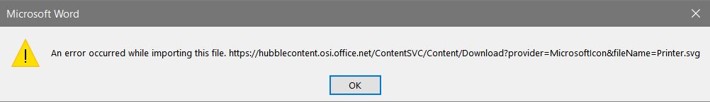 I keep receiving the following error while trying to insert an icon or any picture into a Word 2016 document.