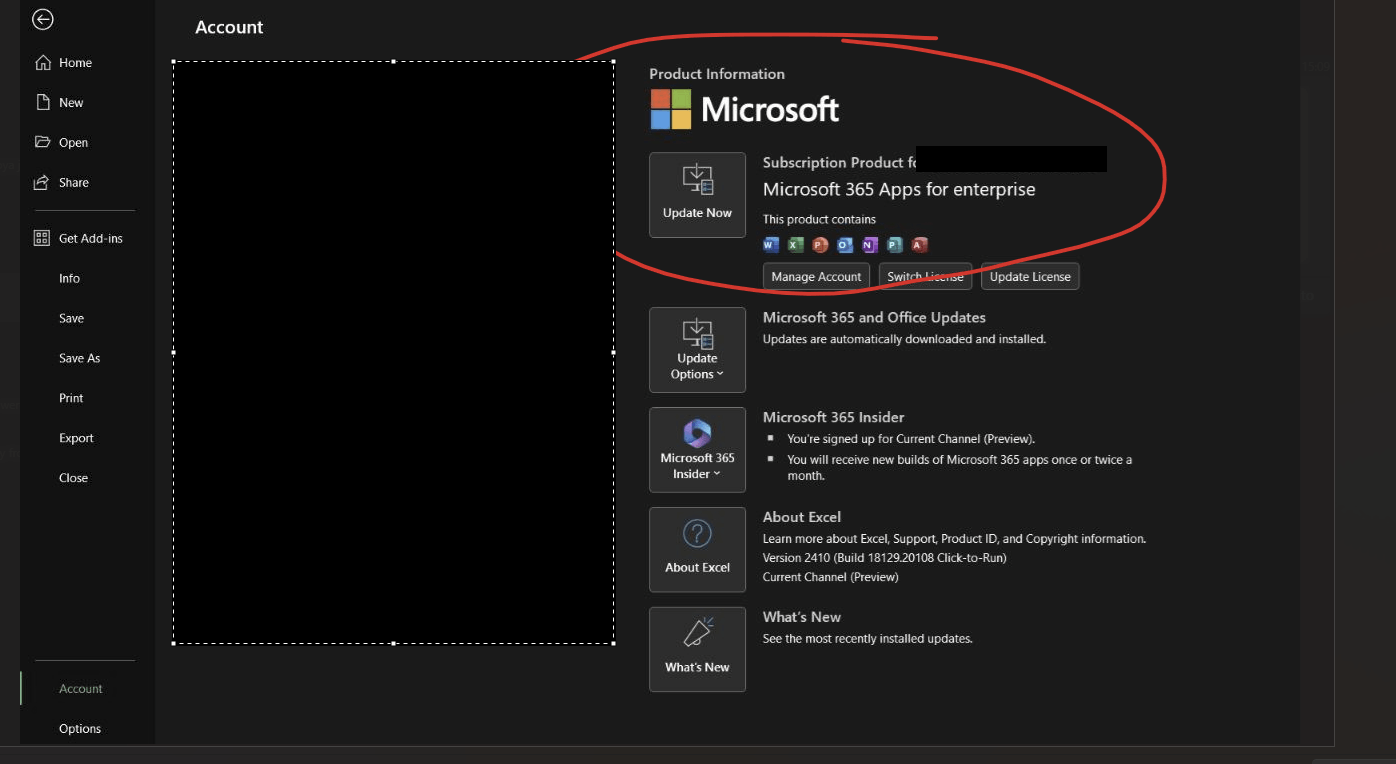 This is on the last version of the current channel Version 2407 (Build 17830.20128) and a work account with a Microsoft 365 E5 license.