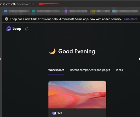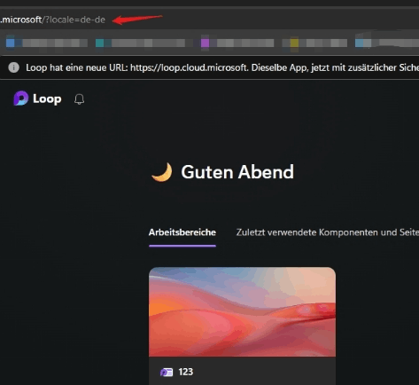 If you need to use the German menu ribbon, please copy this link into the address bar of your Edge : https://loop.cloud.microsoft/?locale=de-de