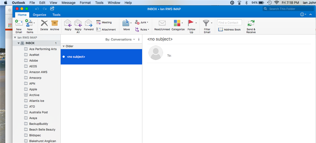 - I have installed Outlook 365 onto my iMac 27" and my MacBook Air and set up both with the same IMAP account but I am getting the same result. Nothing shows in the Inbox just the mail in the subfolders. I have uninstalled and re-installed the Outlook 365 on both devices and set up the account again and still get the same result.