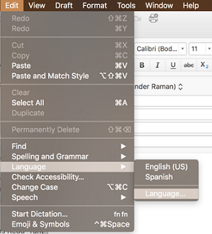 4. Open Outlook and start a new email. Then go to Edit > Language > Language… to open the Language dialog box.