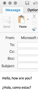 6. Compose a new email and language will be automatically detected. Note: You’ll need to type in the full sentence for the language detection to work, such as ending the sentence with a punctuation mark or start the next paragraph.