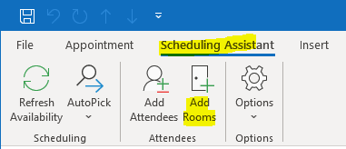 A. Go to Scheduling assistant and click on Add Rooms to add such room to check if it helps.