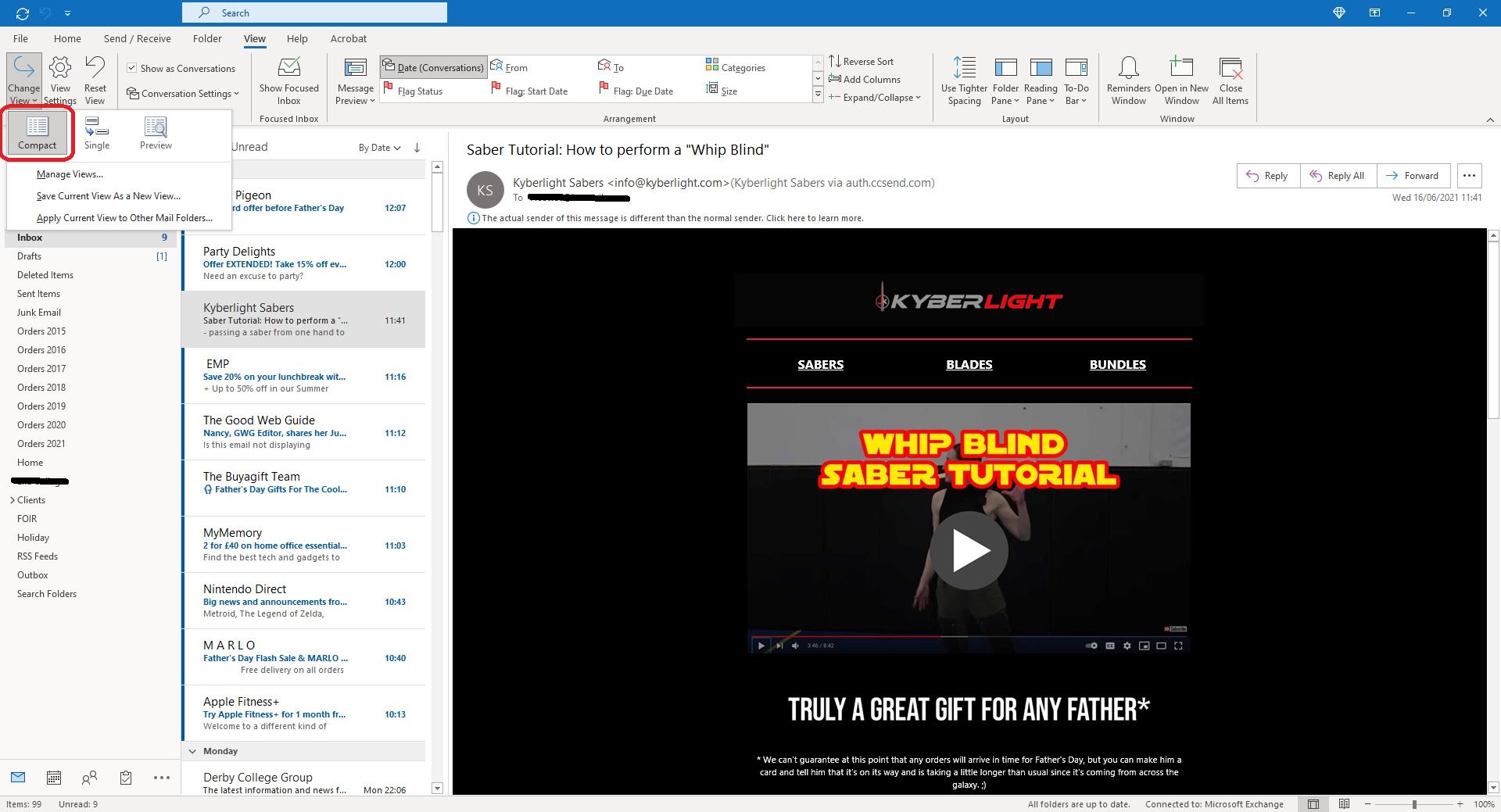 This will restore your View to what it was like before, and is the default view in Outlook that you're used to.