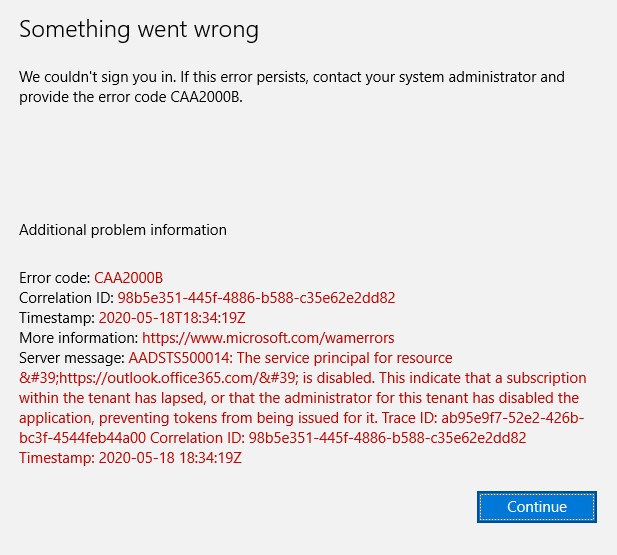 In addition, the error message indicate maybe the subscription within the tenant has lapsed. if it is convenient, please share your email account via Private Message to let me check the situation of your tenant.