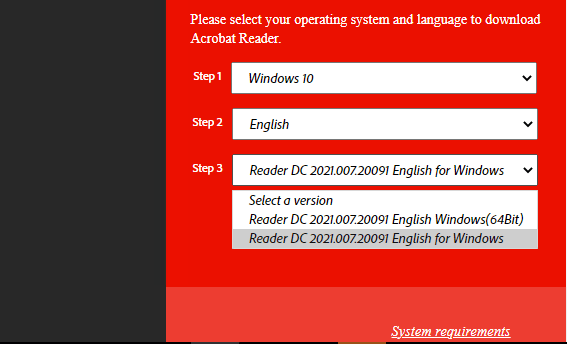 - Move to the Adobe Reader Downloads page and the web page will automatically detect your Reader and OS version.