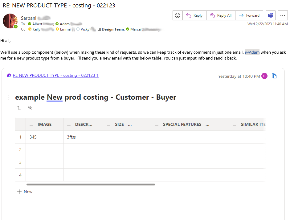 I understand you cannot see the table in an inbound loop component in Outlook and you cannot create a loop component from your Outlook. Since this is happening with more than one user and reproducing in Outlook on the web, the issue will need to be investigated further by collecting logs. For you to be assisted properly, please reach out to our Online support team by opening a service request in Microsoft 365 Admin Center. Get support - Microsoft 365 admin | Microsoft Learn