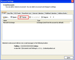 - A new wizard will appear on the screen. Select the desired email account and press the Change option.