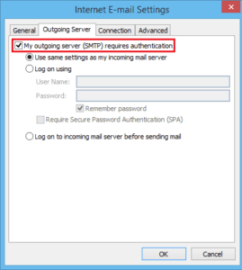 - Tick the My outgoing server (SMTP) requires the authentication option.