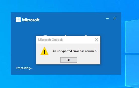 recently I installed Windows 10 on my PC using work email (set up for an organization -> Windows 10 Business). I have downloaded Office 365 and every app works fine except for Outlook. Whenever I try to open it, I get the error "An unexpected error has occurred" and it shuts down.