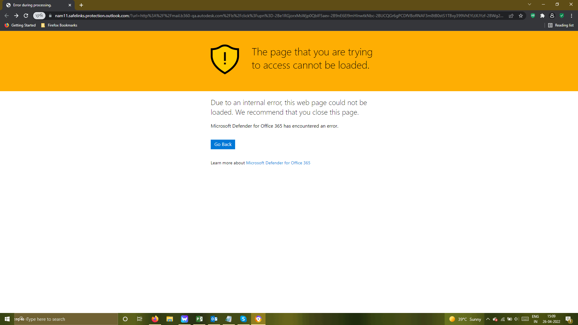 When I try to do the same from web client (outlook.office.com), the link opens correctly and I am able to perform required action. When I tried to compare both the links I found that Windows outlook client truncates the URL to 2048 characters which leads to URL information being lost and causing the failure screen above. Is there a workaround for this?