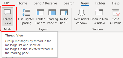 The affected folder is very large at ~58,000 items, primarily modest sized text-based emails. I wonder if that could be an issue. I could try testing on a small test folder, but I don't remember how I turned 'Thread View' on.