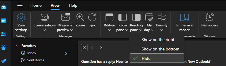 There in the layout section choose <reading pane>