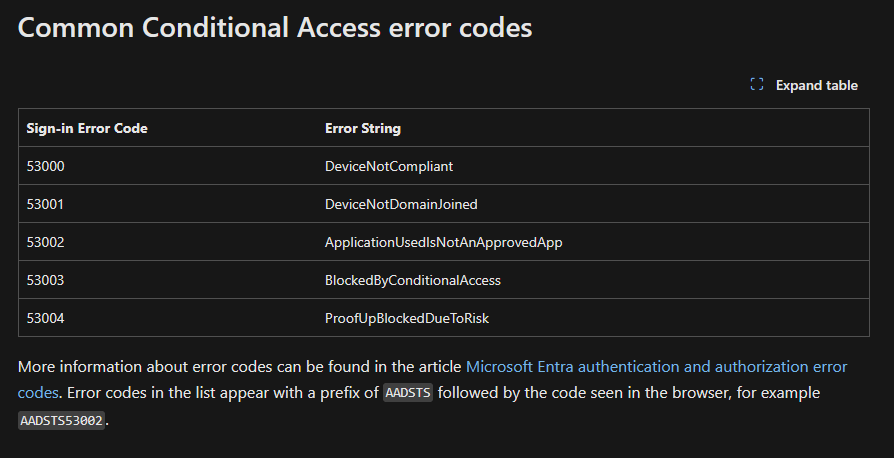 Microsoft Error Code 53003 It’s possibly that an administrator configured some settings under Azure Conditional Access Policies for your account, resulting in the development of this error code. Have you checked with your organization's IT administrator to see if there are any Azure Conditional Access Policies that relate to you and your account? Refer to Troubleshooting sign-in problems with Conditional Access - Microsoft Entra | Microsoft Learn.