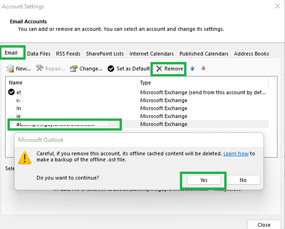 For extra reference kindly refer to Remove or delete an email account from classic Outlook for Windows - Microsoft Support