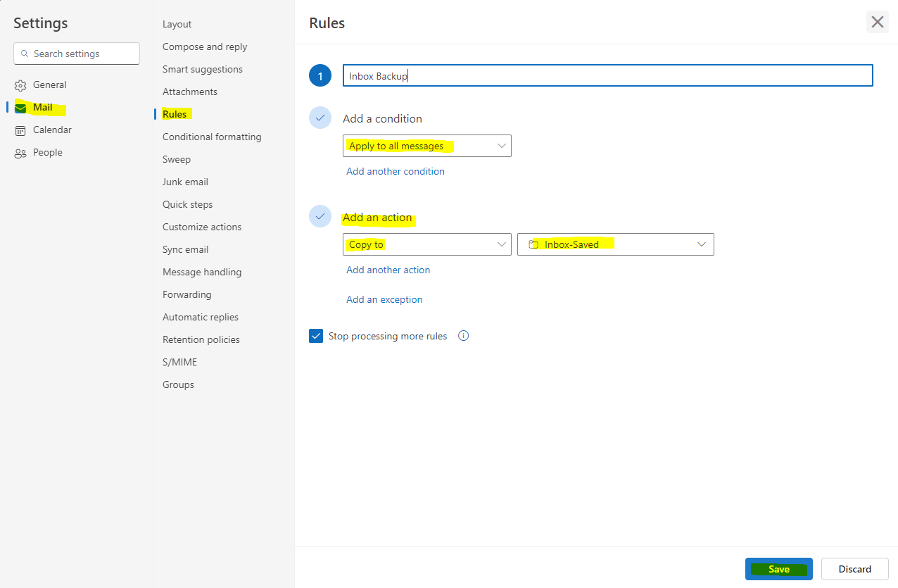 - You can create a rule in Outlook Web to automatically COPY the emails from your inbox folder to one specific folder.