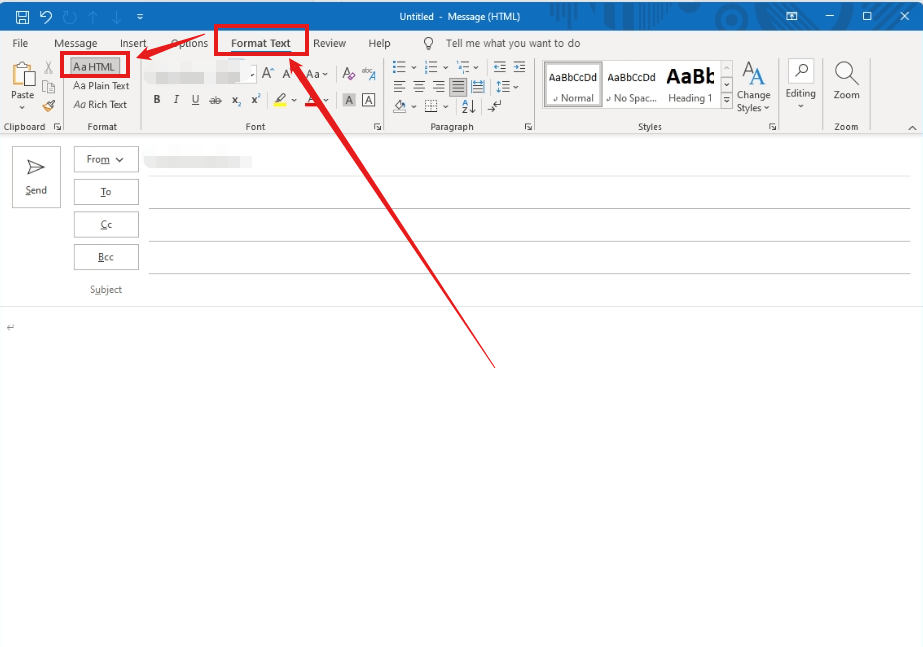 Please click ‘New Message’ in the upper left corner of Classic Outlook and find ‘Format Text’ in the new message editing interface, and change the display form to ‘As a HTML’.