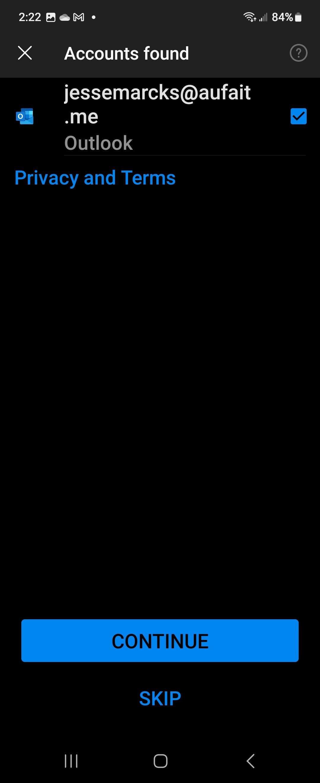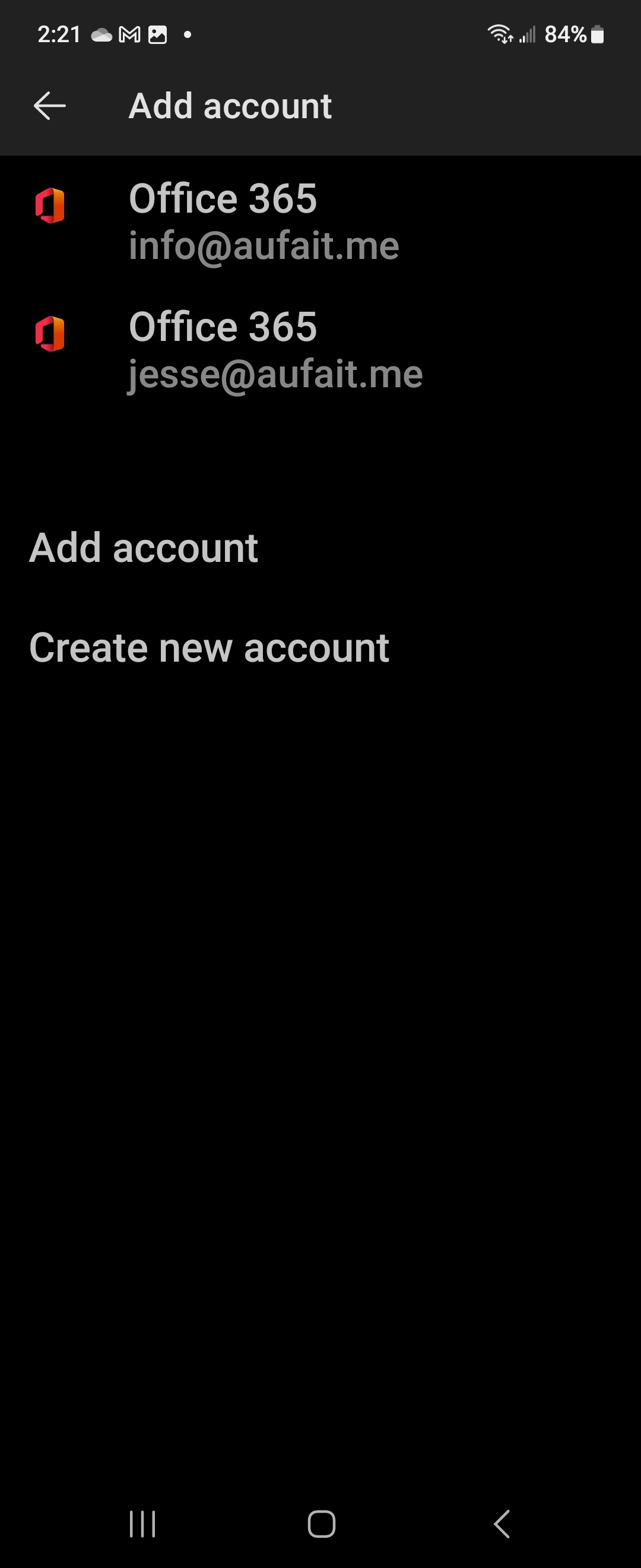 When I click add account - it automatically shows the email account I need BUT it shows it with the outlook icon instead of the 365 icon (that's odd since they are all from go daddy and end in @aufait.me - regardless of whether I click on it or try by unclicking I get the above error message.