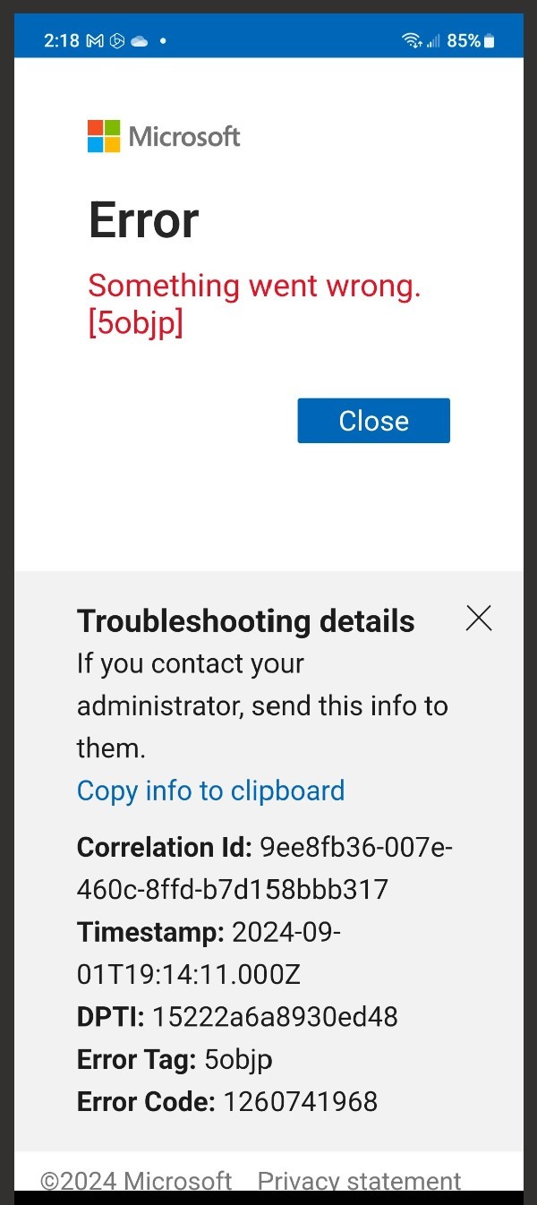 I don't understand... My email works on my old phone and my pc - it just won't let me add to the new phone. It lets me input the email address then I choose work or school and the I get an error page.