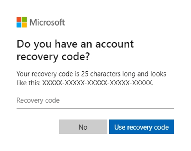 You will then be asked to enter the 25-digit recovery code.