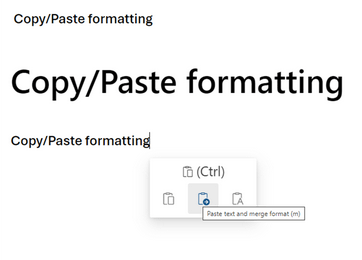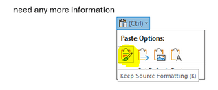 Based on your description: Copy/Paste formatting. I would like to cooperate with you working on this case. To clarify this case, are you using Outlook on the web? Currently, there are three available Paste options in Outlook on the web as below: