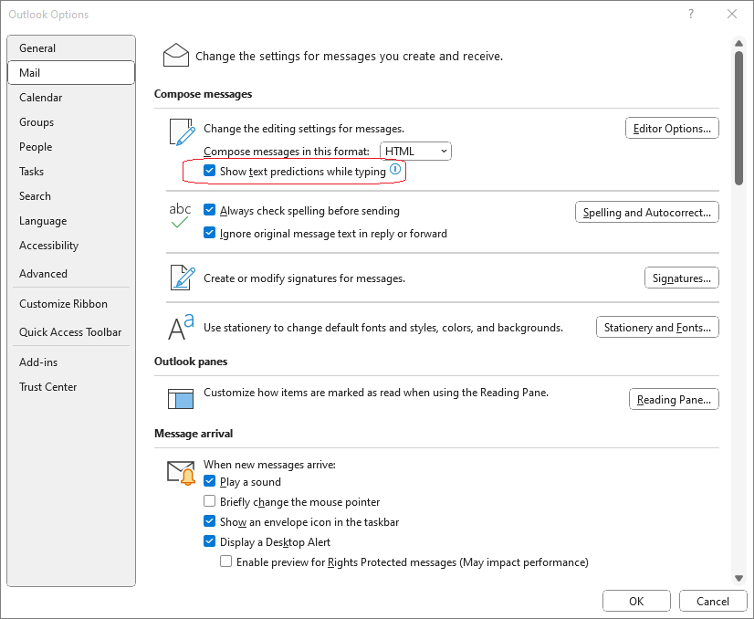 In the meantime, here are some steps you can try to activate predictive text in Classic Outlook: