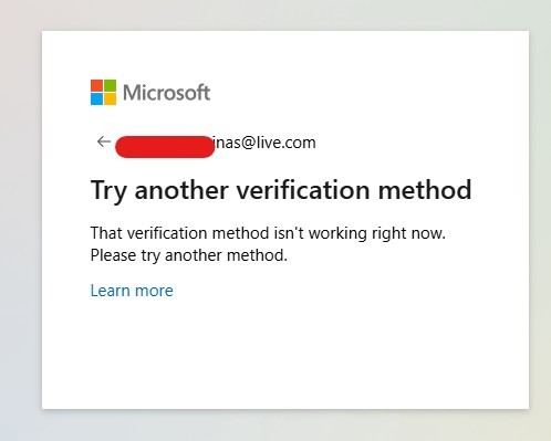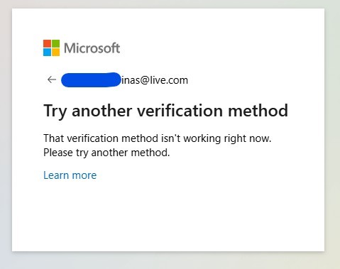 My account has been locked by MS and I'm now in the loop of the "Try another verification method" screen. How to get through this message and unlock my account?