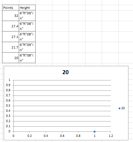 I'm having a problem graphing the height using feet and inches, i have no idea how to do it so i converted it into centimeters and now they have gaps.