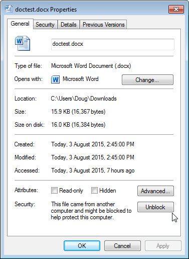 The Unblock button will appear with documents that would normally open in Protected View if they met the criteria covered by the three checkboxes shown below: