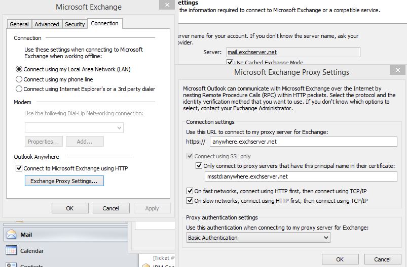 Your second screen is irrelevant as it is for EAS accounts which is something completely different from Exchange accounts which use Outlook Anywhere.