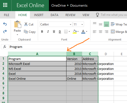 - Now stay your mouse pointer over the column divider between A and B.