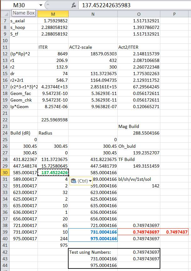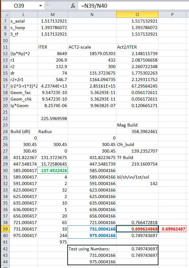 Cell O39 == N39/N40 = 975.0004166/731.0004166 = (Should be 0.7497.. but is shown as 0.6996..)