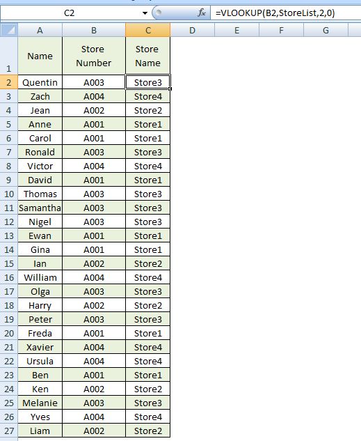 Select the store list and create a defined name (Ctrl+F3) for the list - say StoreList.